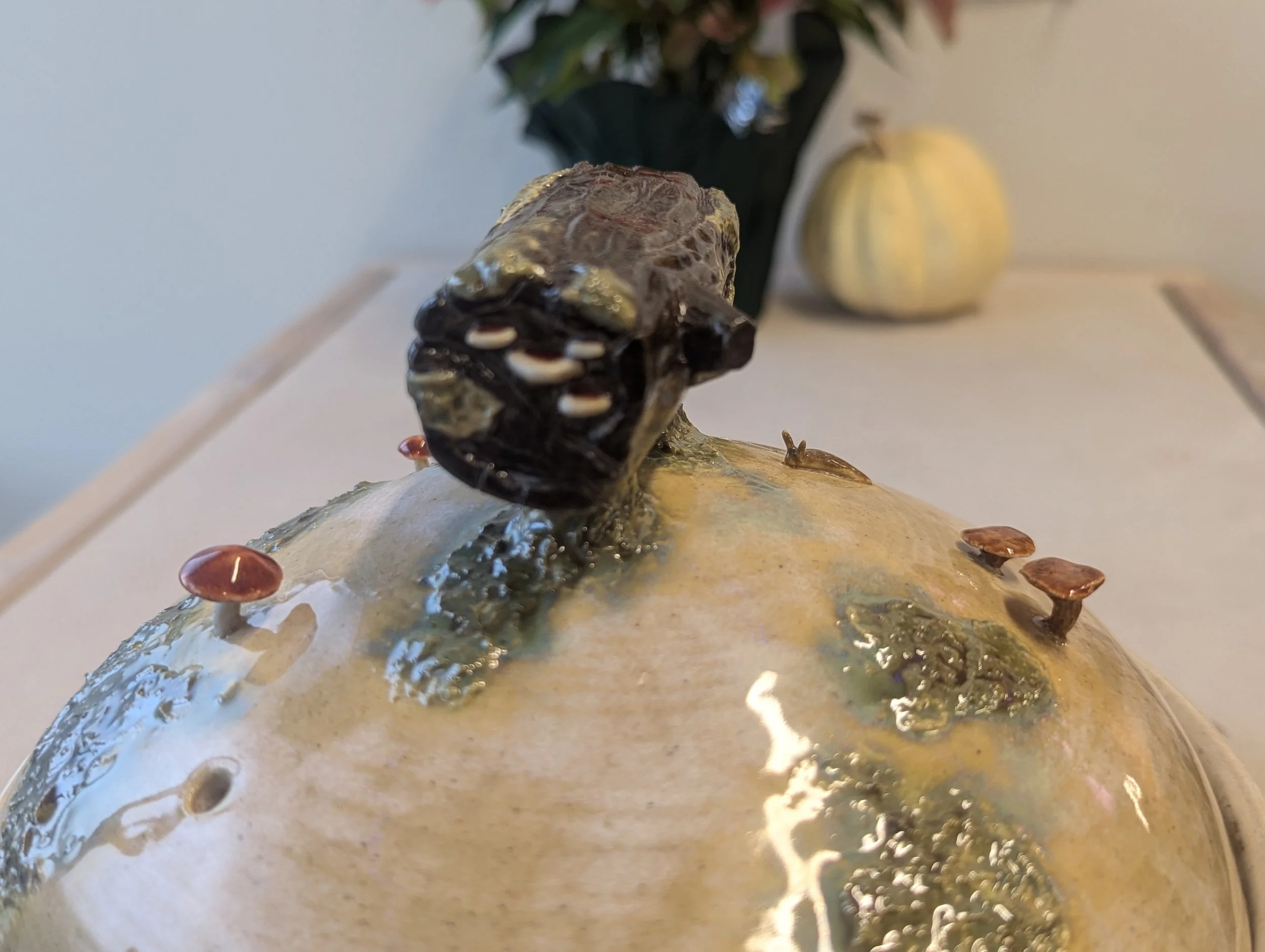 By Calley Orene Macdonald Pottery with an emphasis on whimsy, delight, and little surprises. Large woodland casserole dish featuring all the earthly goodies the Pacific Northwest has to offer Little Guys Moss Series